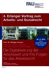 Am 08.12.2016 hält Prof. Dr. Rüdiger Krause (Direktor des Instituts für Arbeitsrecht an der Georg-August-Universität Göttingen) den 4. Erlanger Vortrag zum Arbeits- und Sozialrecht zum Thema: