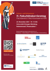 Du bist auf der Suche nach einem Praktikum, einem Nebenjob, einer Referendarstelle oder einer Festanstellung? Dann informiere dich im Rahmen unseres Fakultätskarrieretags bei über 10 Ausstellern im persönlichen Gespräch mit Vertreter:innen zahlreicher Kanzleien, Institutionen und Unternehmen über deine Möglichkeiten, deinen Berufsweg zu gestalten. Wie schon im vergangenen Jahr findet die Karrieremesse dabei im Online-Format statt.