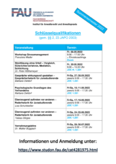 Auch im Sommersemester bietet das Institut für Anwaltsrecht und Anwaltspraxis wieder eine breitgefächerte Auswahl an Schlüsselqualifikationen (i.S.d. §§ 2, 23 JAPO 2003) an. Der entsprechende Terminplan ist hier zu finden.