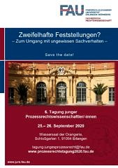 Die 6. Tagung junger Prozessrechtswissenschaftler/-innen wird am 25./26. September 2020 bei uns am Fachbereich Rechtswissenschaft der Friedrich-Alexander-Universität Erlangen-Nürnberg stattfinden.