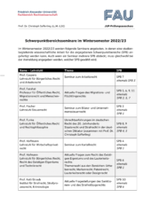 Im Wintersemester 2022/23 werden wieder eine Vielzahl von spannenden Seminaren angeboten, in denen eine studienbegleitende wissenschaftliche Arbeit für den Schwerpunktbereich (SPB) angefertigt werden kann. Näheres entnehmen Sie bitte der entsprechenden Ankündigung.