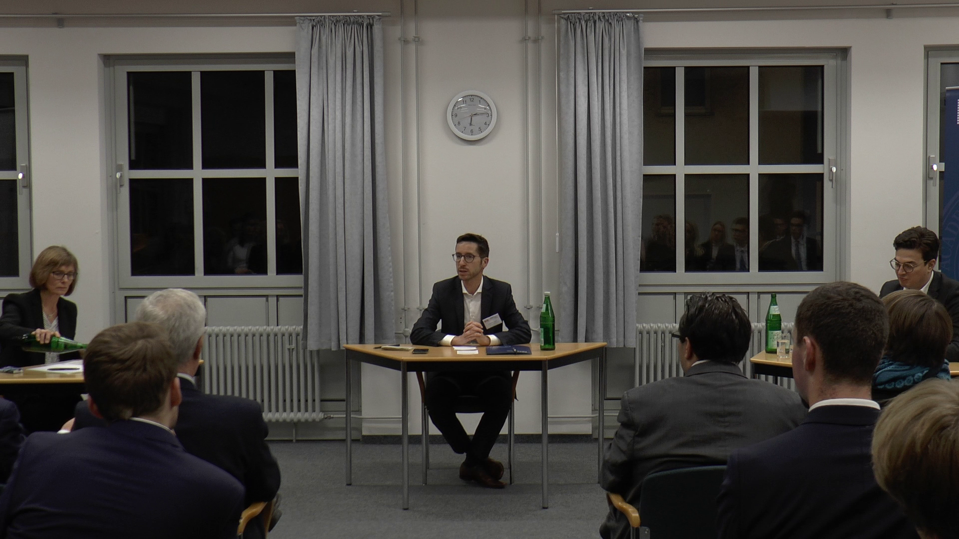 Den Abschluss der Veranstaltung bildete die Debatte „VerMOOTung oder Fakt? Moot als sinnvolle Vorbereitung auf die Praxis“. Als Diskutanten konnten Frau Dr. Margin Zorn, Vizepräsidentin des LG Nürnberg-Fürth, sowie Dr. Alessandro Covi, Herbert Smith Freehils LLP, begrüßt werden. In der Debatte wurde deutlich, dass Moots die diversen Tätigkeiten der mannigfaltigen juristischen Berufsbilder nicht umfassend abbilden können, allerdings waren sich die Diskutanten einig, dass Moots durchaus eine sinnvolle Ergänzung zum klassischen Ausbildungskonzept darstellen. Durch die Schulung zahlreicher wichtiger Fähigkeiten würden Moot-Teilnehmende im später im Berufsleben profitieren. Interventionen aus dem Publikum betonten daneben den unbestrittenen Spaßfaktor von Moots und das innovative Format zur Vermittlung von Fachwissen.