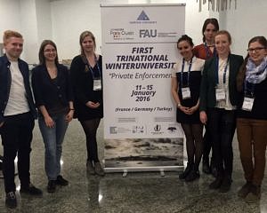 Gleich zu Jahresbeginn bot sich Erlanger Studierenden und Doktoranden eine besondere Chance, ihre juristischen Kenntnisse auf einem speziellen Gebiet zu vertiefen und nebenbei in die türkische Kultur einzutauchen. Die Yeditepe Universität Istanbul öffnete ihre Pforten für eine trinationale Winter University. Das Konzept der Sommer- bzw. Winteruniversitäten der Deutsch-Französischen Hochschule wird seit 2013 auch auf dritte Länder ausgeweitet und ermöglicht so unterschiedliche Hochschulkooperationen. In Istanbul kamen vom 1. bis zum 15. Januar 2016 Teilnehmer dreier Universitäten zusammen, um sich auf verschiedene Weisen dem Oberthema „Private Rechtsdurchsetzung“ zu widmen. Neben Vertretern aus Paris-Nanterre (bzw. Potsdam) und Istanbul reiste auch eine Delegation der FAU an, bestehend aus Studierenden, Promovierenden, wissenschaftlichen Mitarbeitern sowie den Professoren Robert Freitag, Jochen Hoffmann, Klaus-Ulrich Schmolke an. In täglich stattfindenden Vorträgen und Workshops wurden verschiedene Aspekte beleuchtet und gemeinsam rechtsvergleichende Punkte erarbeitet. Von alternativer Konfliktbeilegung über Zivilprozessrecht bis hin zu verfassungsrechtlichen Komponenten fand eine umfangreiche und intensive Auseinandersetzung mit vielen Facetten des Themas statt.