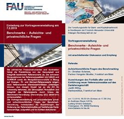 Wir würden uns sehr freuen, Sie bei der Veranstaltung begrüßen zu dürfen und bitten für den Fall Ihres Erscheinens freundlich um entsprechende Rückmeldung, am besten per E-Mail an fs-bankrecht@fau.de.